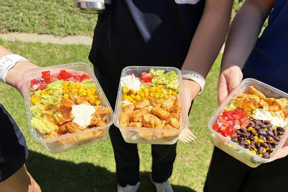 “For the burrito bowls today we have rice and we’re going to add chicken, corn, beans, lettuce, tomato and grated cheese and red onion,” she said.