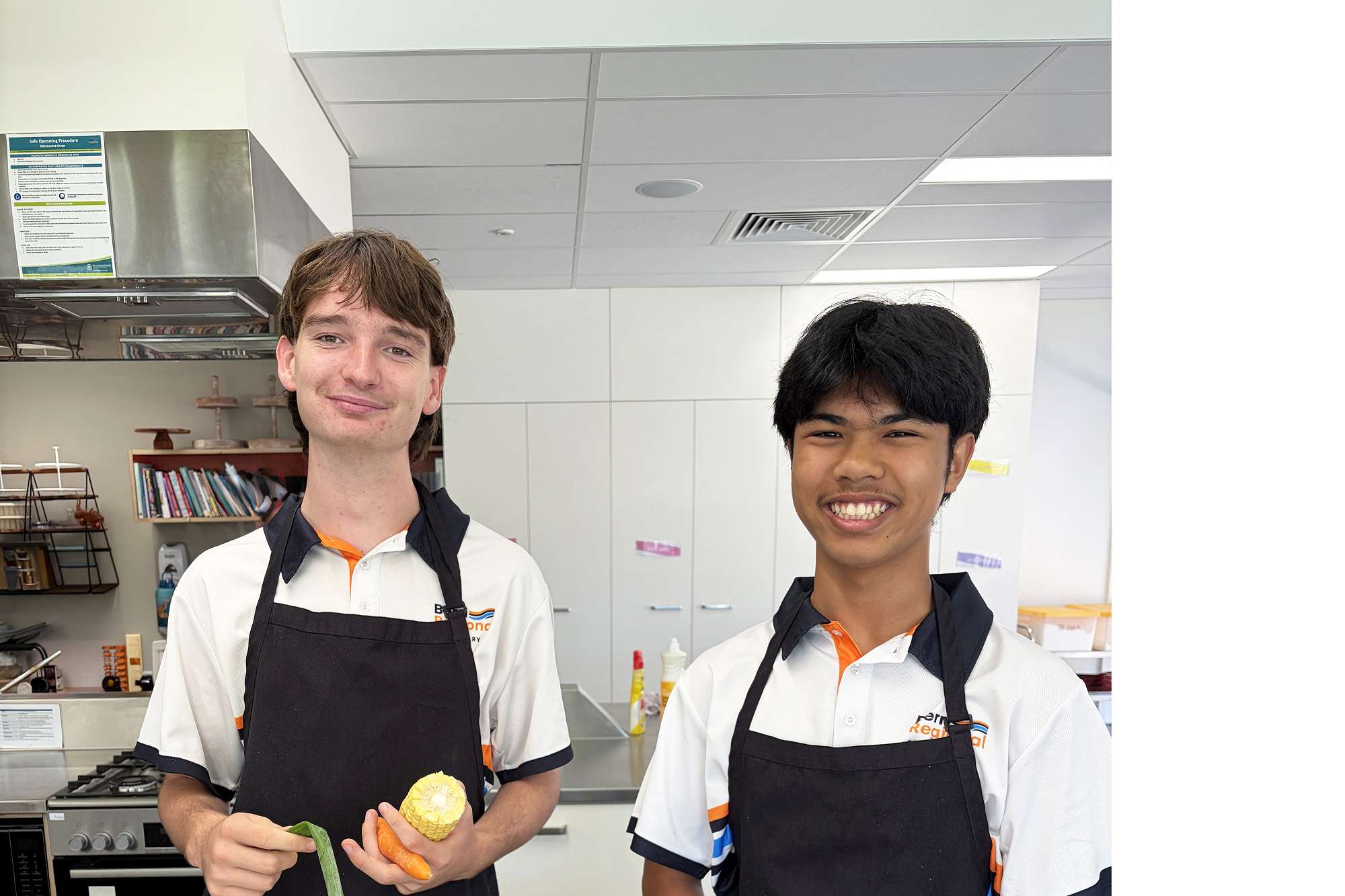 Fellow Year 12 students Harvey and Jacob were preparing their chicken and vegetables for the dish.